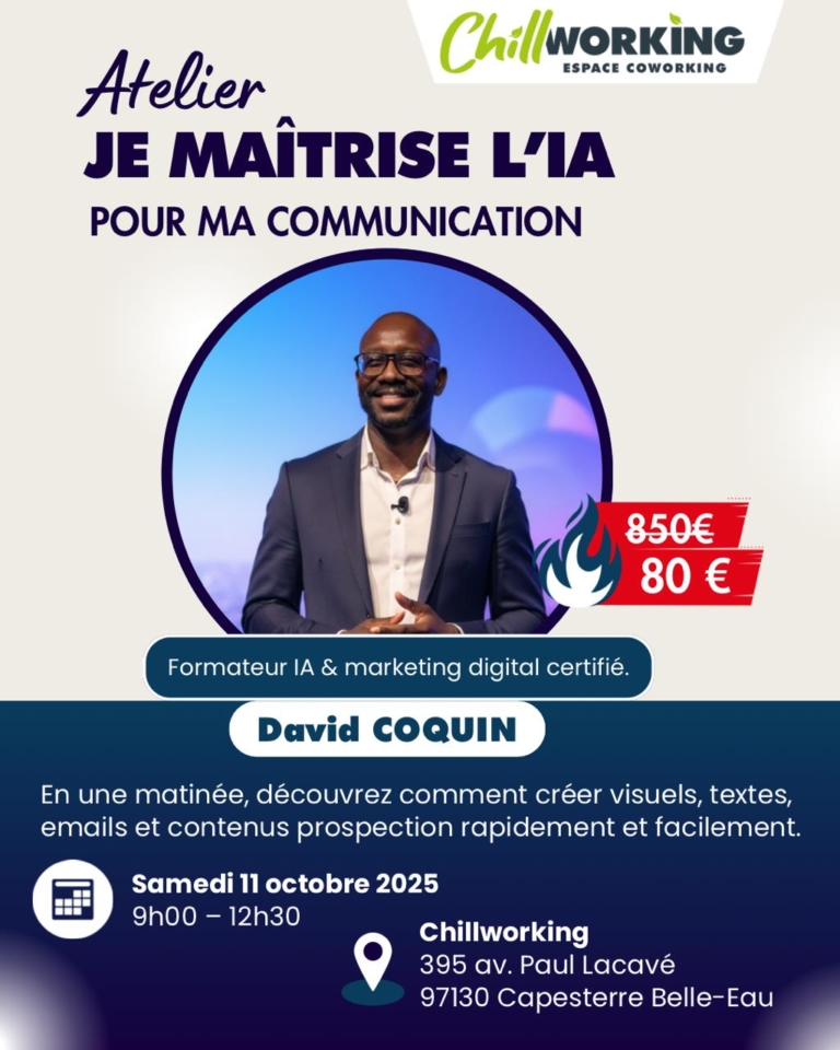 11 octobre 2025 — 9h00–12h30 — Chillworking, 395 Avenue Paul Lacavé, Capesterre-Belle-Eau 97130.